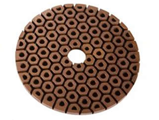 Hexagon copper discs are designed for flat graining. The honeycomb pattern in the copper bond is ideal for very aggressive work.. It is primarily used on polish machines for grinding floor surface in order to restore the floors original beauty.